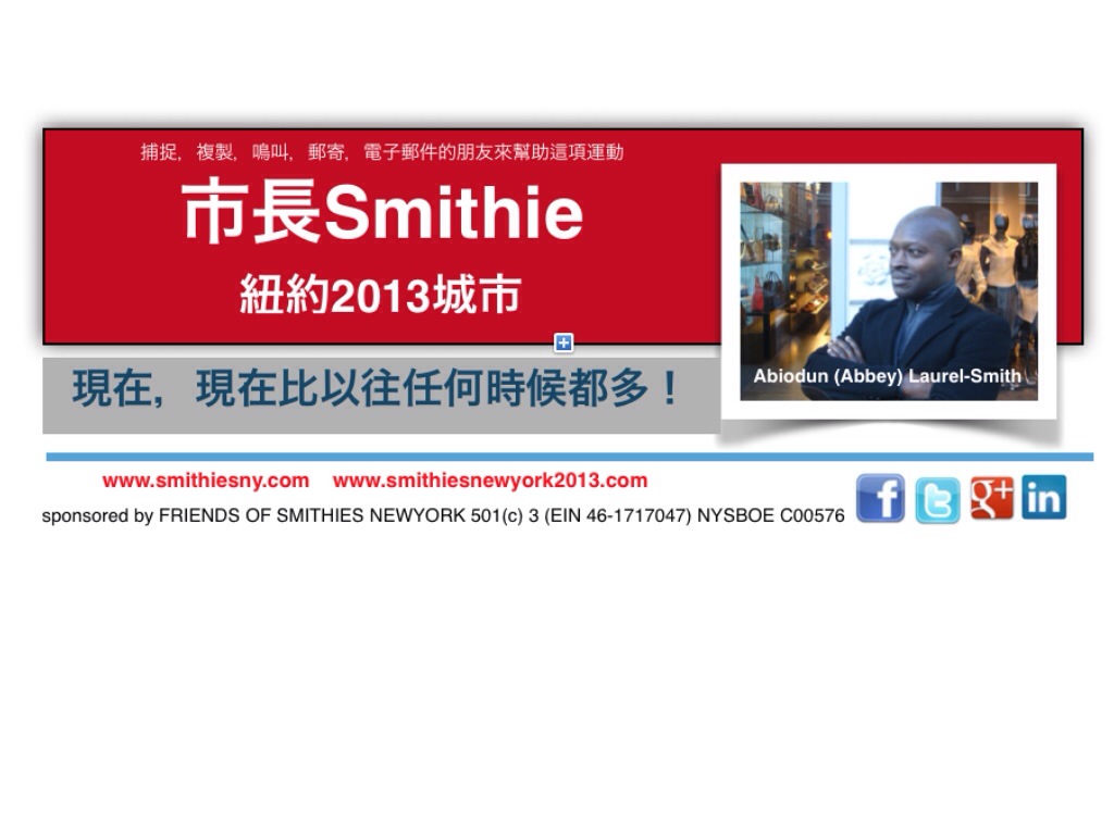 Remember to write my name “SMITHIE” as your write-in candidate for Mayor on the ballot come the 5th of November.