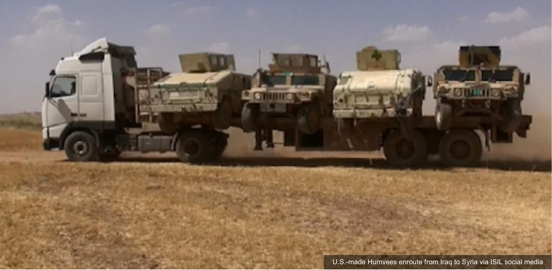 Result: ISIS captured a lot of weapons, full US military type battle gears, Kevlar jackets, helmets and manuals. Majority of which are American made. ISIS is bold because they have fought against Abrams tanks, depleted at least ten with Chinese and Russian missiles. The rest, they took over and pass down into their ranks. So they now have a set of battle ready Abrams and Russian tanks, hundreds if not thousands of Humvee, a lot of armored anti-personnel and mine trucks, thousands of M16, Shotguns, more than fifty Howitzers and other Russian and French filed guns, Stinger, Igla, Strela, Grail shoulder fired surface to air missiles, anti-tank missiles and many more. Not sure they have a Pilots yet, but they also have a couple of Black Hawk helicopters, Russian Mil and a couple of troop transport carriers.