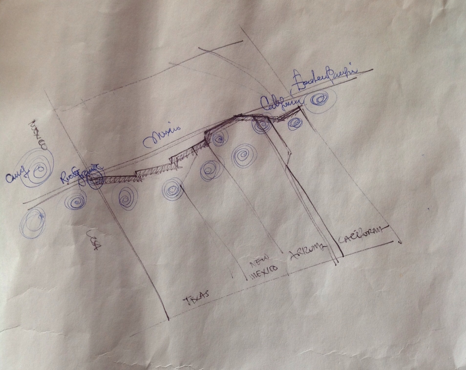 Outer perimeter (half a mile) facing Mexico. Middle perimeter (3 miles) on the American side. First part of the middle core will be 30meter deep and about a mile wide. Terrain will be picturesque, but spiked with deeply inserted sensors, drill alert monitors, slabs and many other underground barriers. The last inner perimeter wall inside America will be made up of radar stations, settlements, C2 stations, helicopter pads, police stations, military and civilian dwellings as well as hotels and commercial establishments.