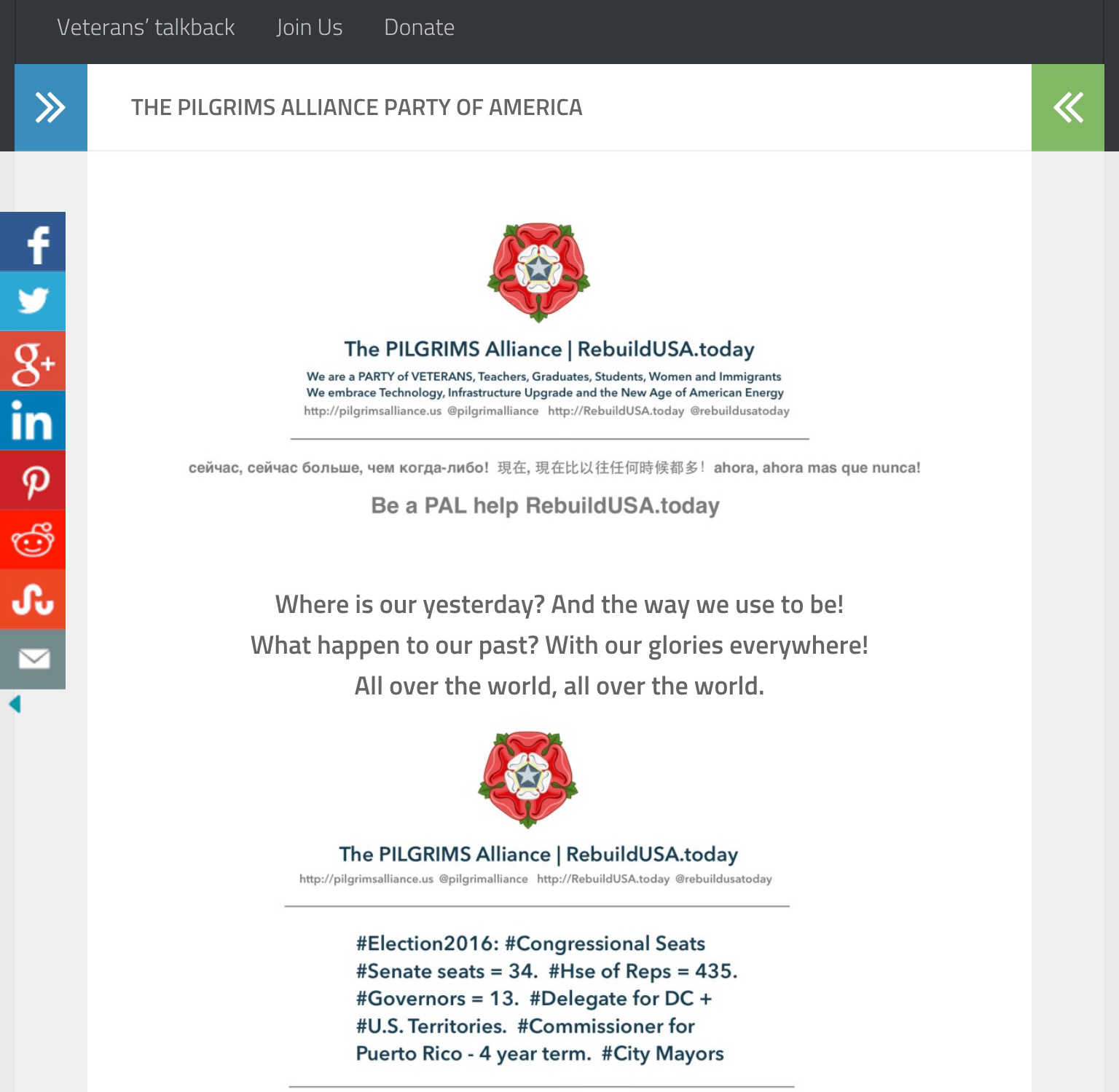 Our party is The PILGRIMS Alliance Party of America or “La Alianza Peregrinos” FEC C00570937. And our HPAC is ReBuildUSAtoday FEC C00626481. As much as we are proud to be the “third party” option in the United States, we are proud to be the first Latino Americano coalition party in the United States, and we are also proud to say thanks to the FEC, we will feature in local, state, city and all general elections from now onwards.